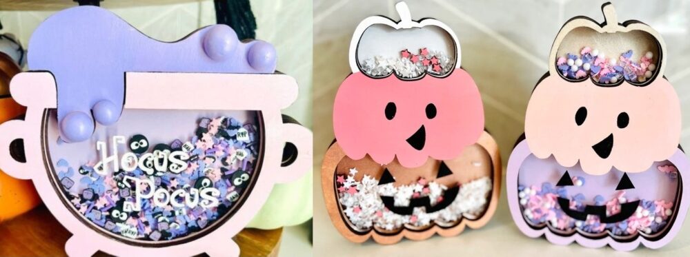 Another sweet find for Hocus Pocus fans, this pink Hocus Pocus cauldron shaker is both pretty and playful! The seller also creates other fun Halloween-themed shakers in lovely pastel purple and pinks, from stacked pumpkins to Frankenstein and more.
